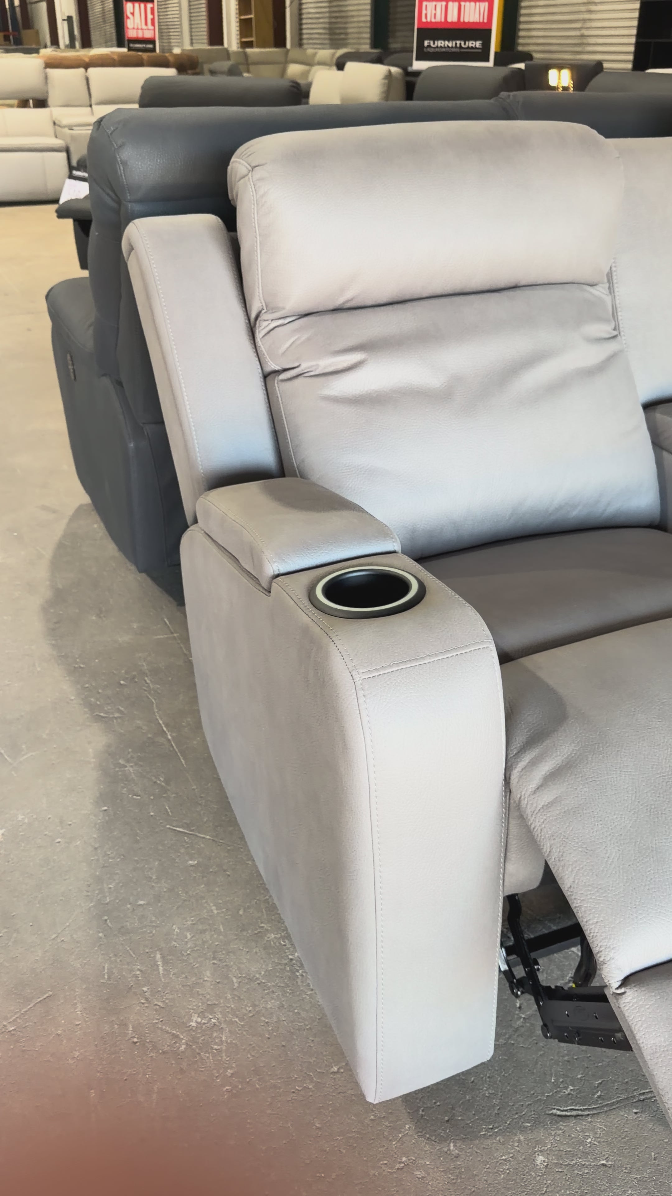 Cleo single electric recliner with dual electric recliners in gunmetal grey